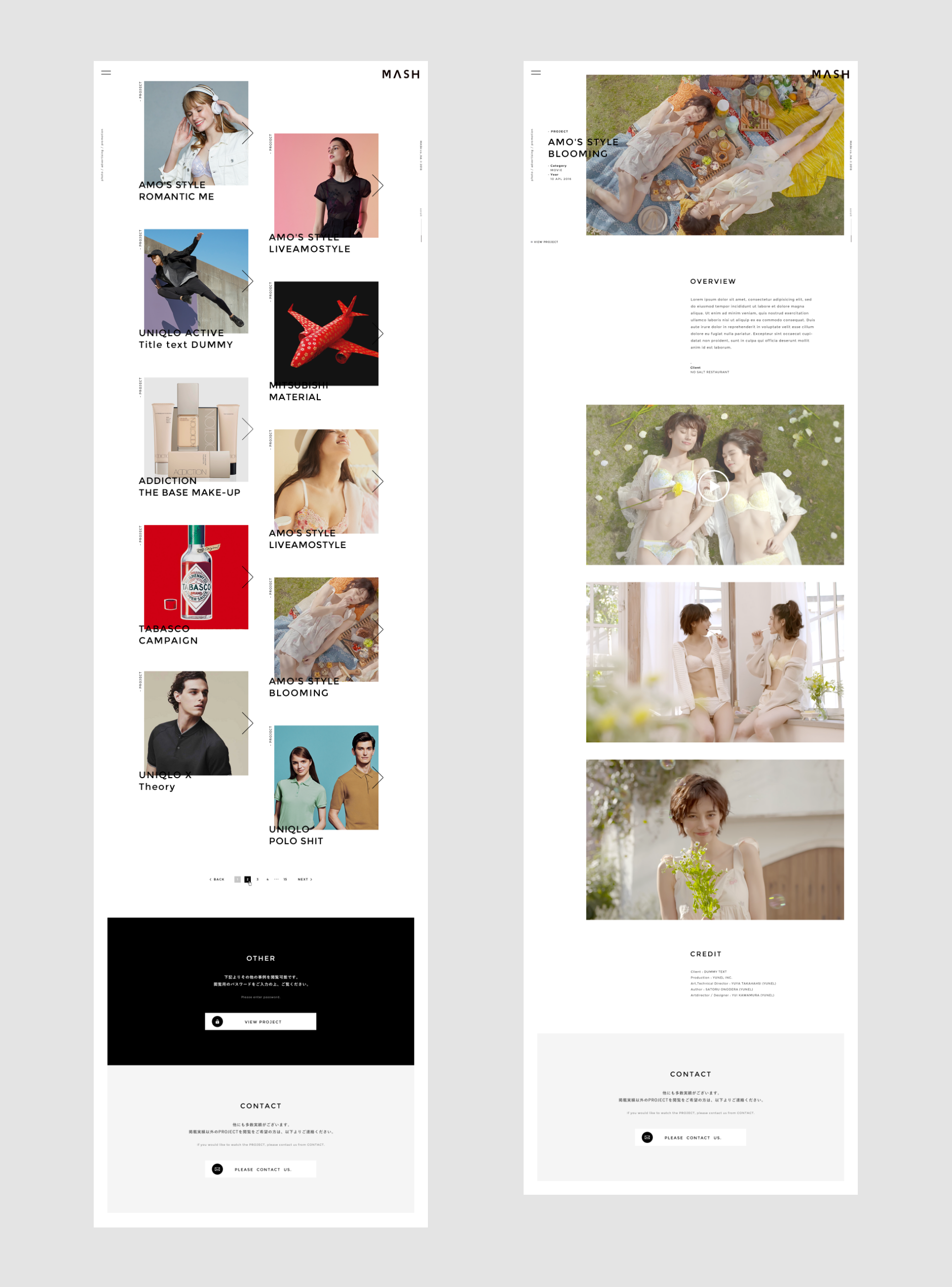 広告や販売促進・雑誌などのパブリシティを中心とした撮影の他、企画・制作・コーディネート業務、フォトグラファー・スタイリスト・ヘアメイク等のクリエイターのご提案、モデルキャスティング、写真撮影、その他撮影に必要な提案を行うプロダクションMASHの、ロゴ/Webサイト/会社資料/名刺のアートディレクション、デザインを担当いたしました。