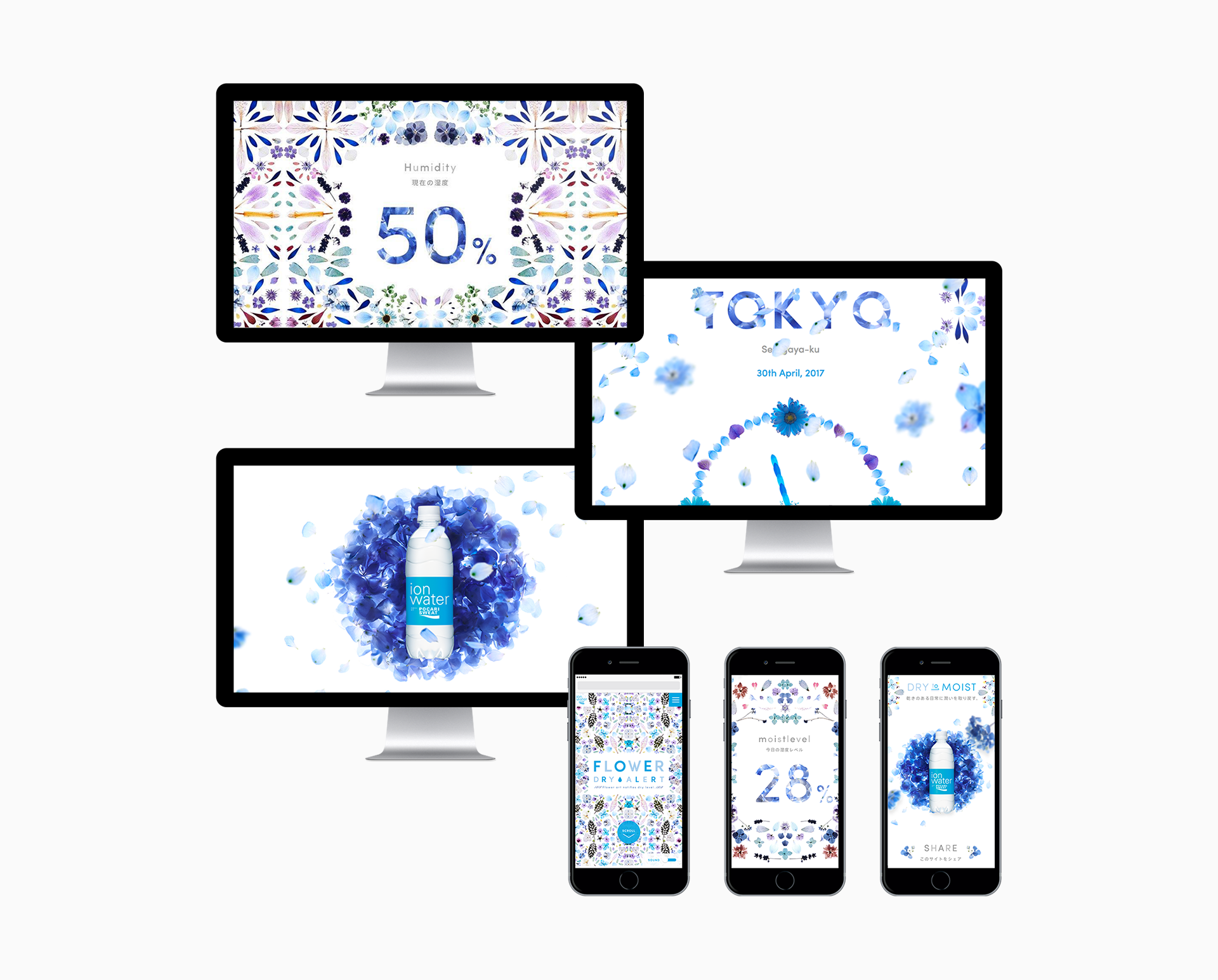 イオン飲料「ポカリスエット イオンウォーター」による日本の女性に向けた“からだの渇きへの気づき”をテーマにした、“湿度”を表現するWEBコンテンツ「FLOWER DRY ALERT」(フラワー ドライ アラート)