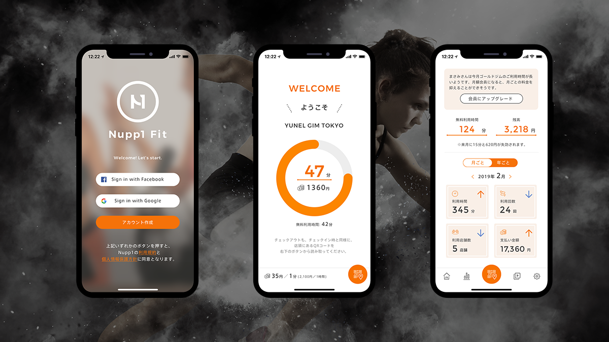 「シェアリングエコノミー×FinTech×SaaS」モデルを活用した基本プラットフォーム「Nupp1 Core」を提供するLlotheo株式会社が「Nupp1 Core」を利用した国内初のフィットネス向けシェアリングサービス「Nupp1 Fit(ナップワンフィット)」、VIのアートディレクション・デザイン、アプリのアートディレクション・UIデザインを担当いたしました。